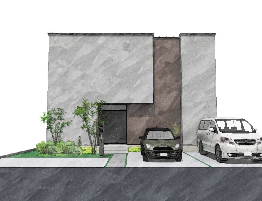 シンボルツリーや植栽の緑を添えることで、無機質になりすぎず、柔らかな印象を与えてくれるのもポイントです。