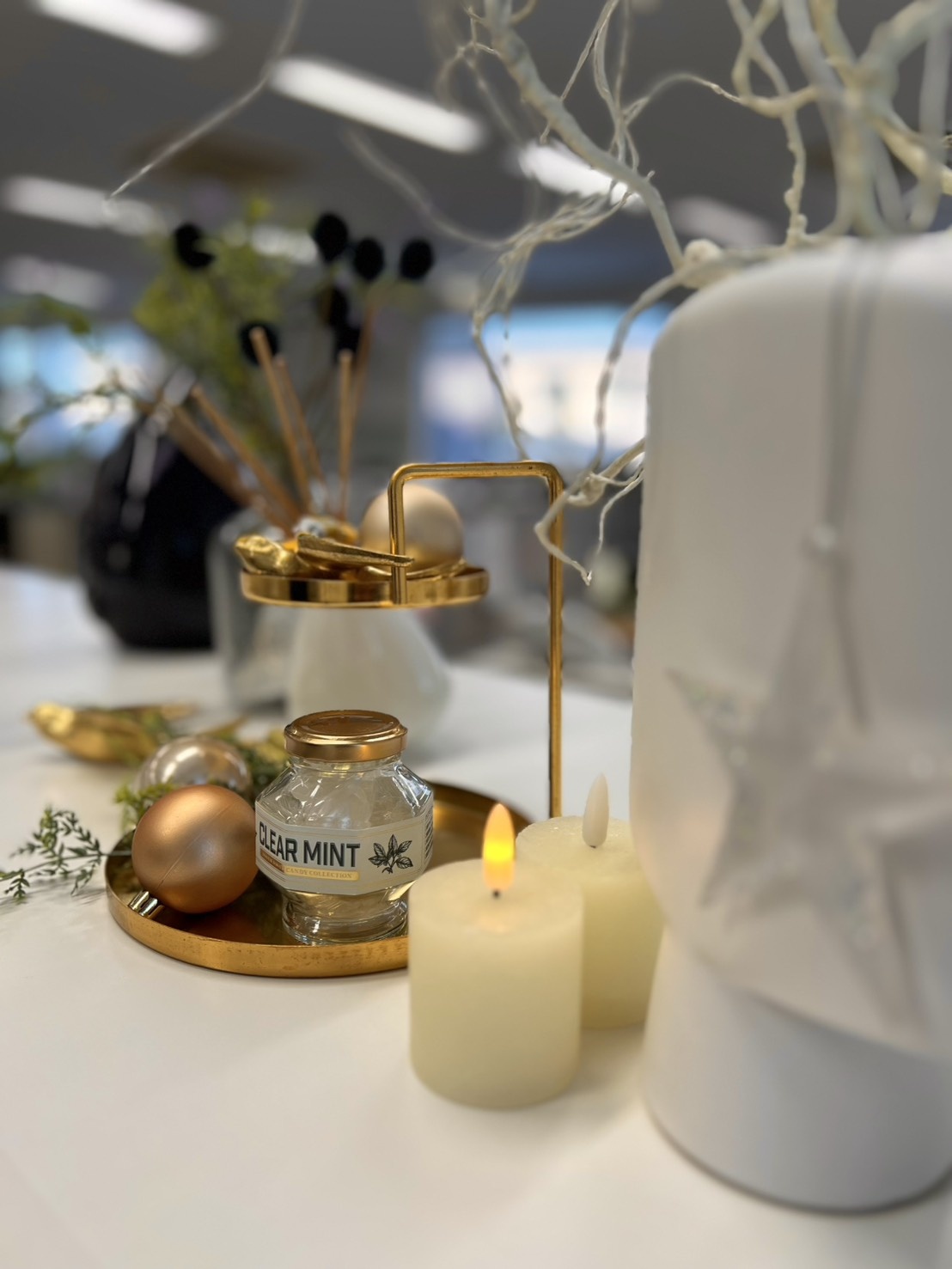 お客様の入り口にはクリスマスツリーを、受付カウンターにはコーディネーターがセレクトしたオシャレな小物たちが並び、毎日とても癒されています(*'ω'*)