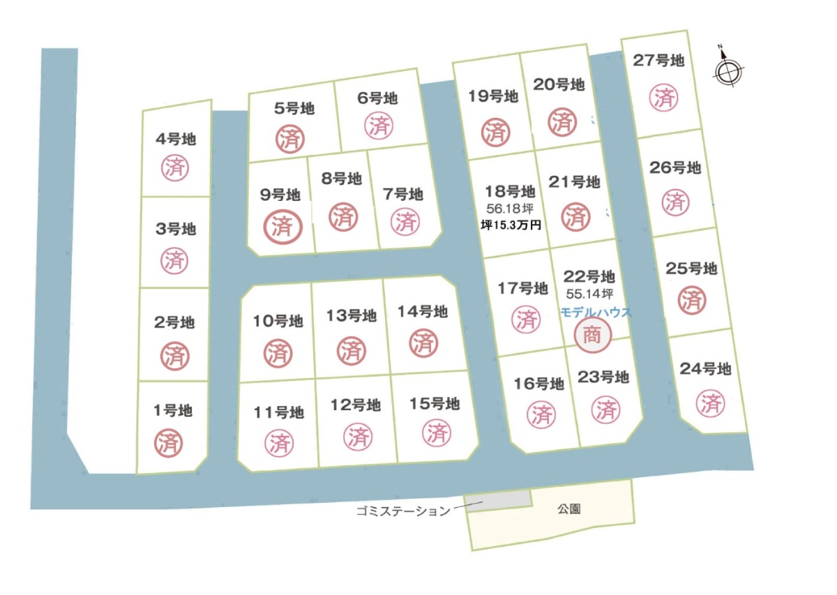 | 22号地 | 55.14坪 | モデルハウス | 商談中 |