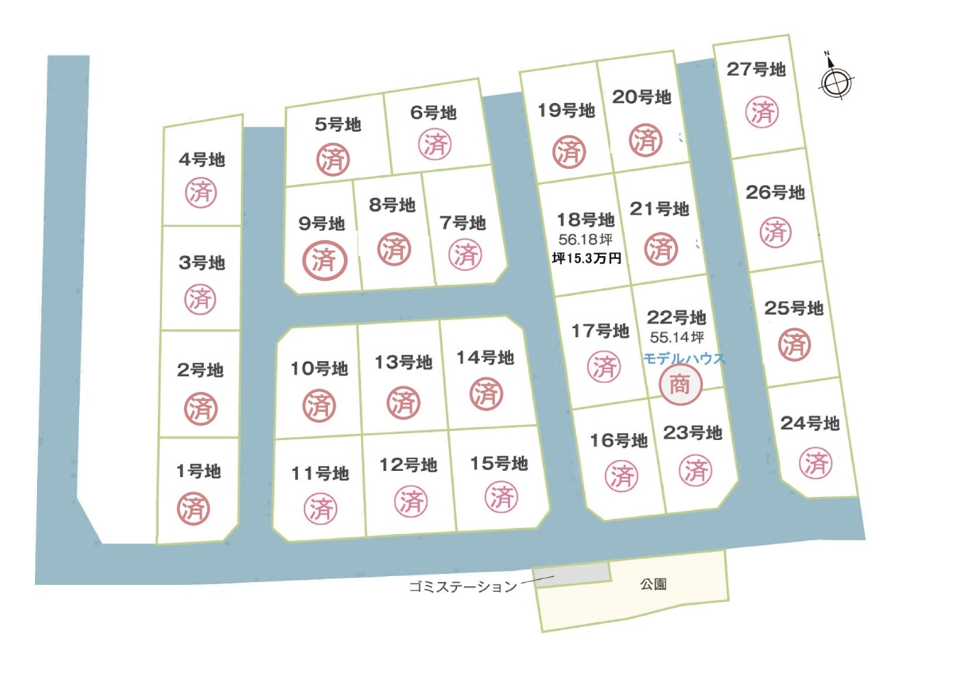 | 18号地 | 56.18坪 | 15.3万円 | 8,595,540円 |